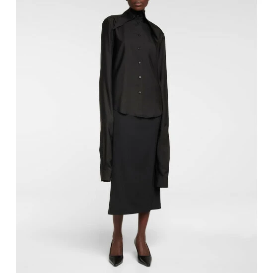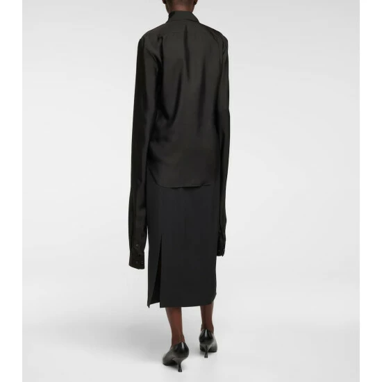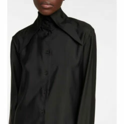 Refined tailoring is at the heart of The Row’s identity – the brand was named after Savile Row, London’s bespoke tailoring district. The Ace silk shirt appears with an oversized point collar and stacked long sleeves.