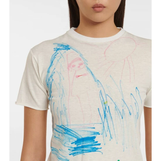 Embrace subtle hints of color with the cropped Alasdair on the Beach T-shirt from The Row. It’s made from organically cultivated cotton and features a colorful children’s artwork print across the chest.