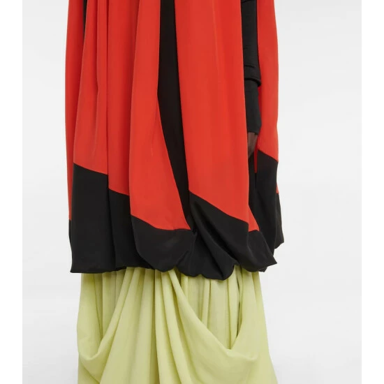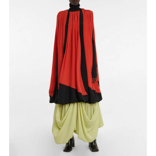 Flowing with The Row’s signature elegance, the Althea silk top drapes with languid ease. Featuring a geometric pattern, this piece has a high round neckline with draped sides and a gathered hem.