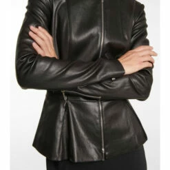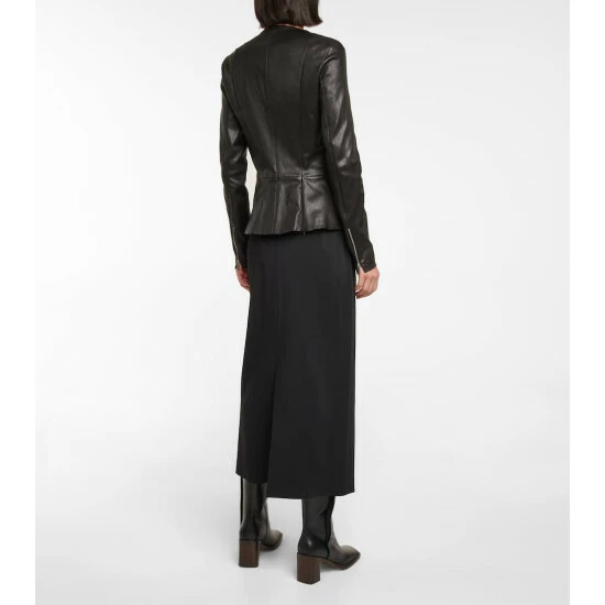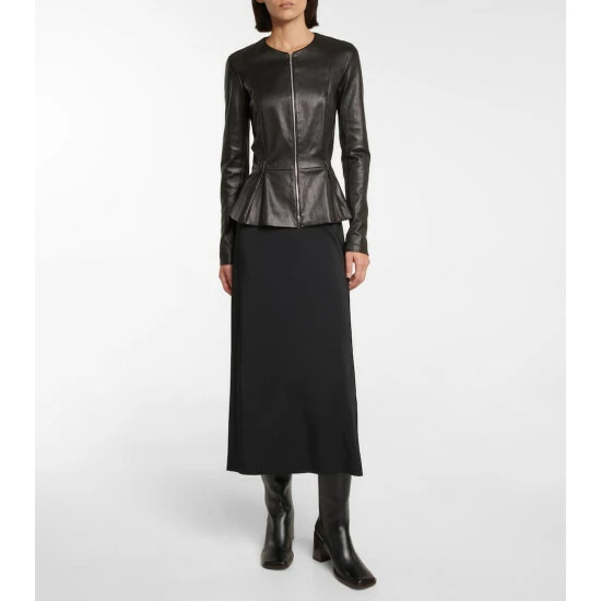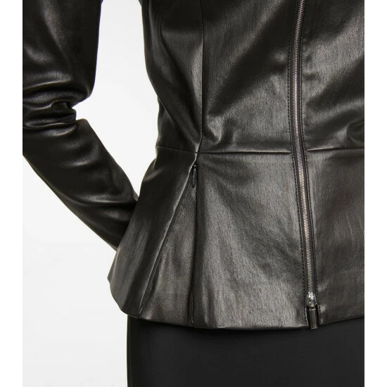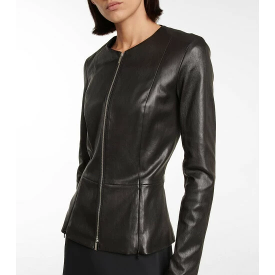 The Anasta jacket from The Row is a great investment piece with its timeless, clean design. Made from black lambskin leather with stretch-charmeuse lining for the perfect drape and fit, it features a peplum waist with four hidden zippers.