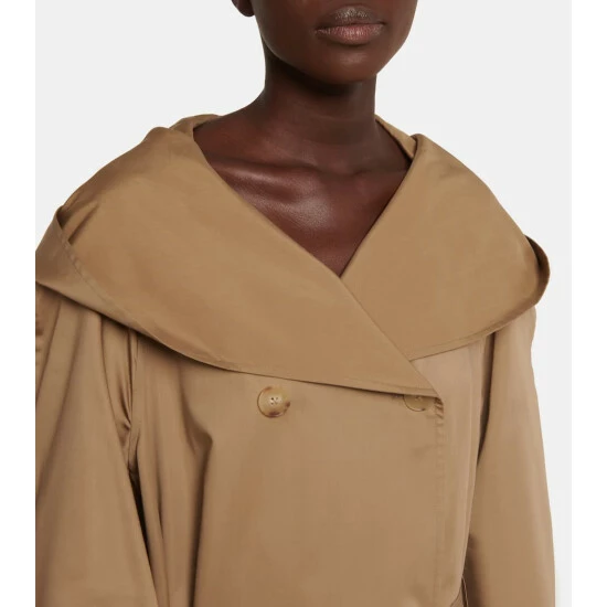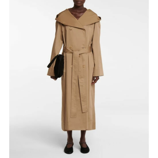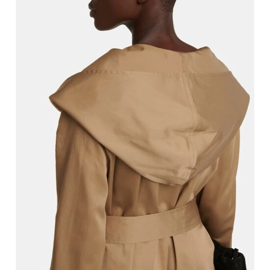The exaggerated proportions of the Augusta trench coat from The Row are what give it a stylish, contemporary edge. Cut from cotton and silk with a belted waist, it’s shaped with wide sleeves and an oversized hood.