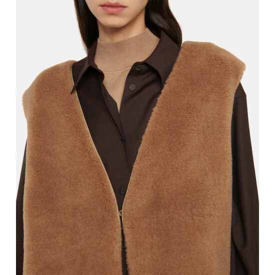 The Beyzita vest from The Row is made from camel hair and silk and has a finish that imitates fur. Perfect for layering, it has a wide, longline silhouette and a zipped front.