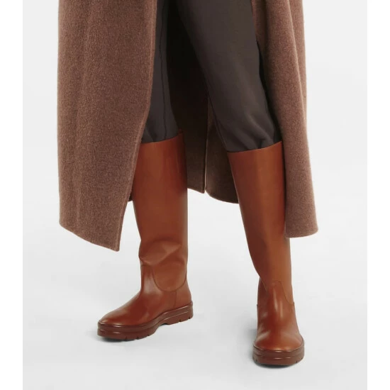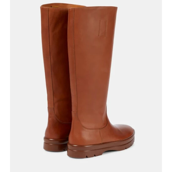 Structure everyday looks around the easy elegance of The Row’s Billie boats. Made from polished brown leather, they’re a knee-high style with round toes and flat heels.