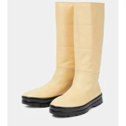 The Billie boots from The Row are a new twist on the classic riding boot style. They’re designed with topstitching on the shaft, which gives the smooth leather a puffy effect.