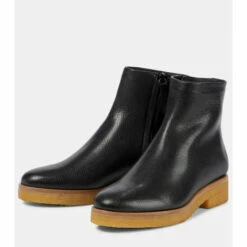 The Boris ankle boots from The Row are the ultimate choice for everyday, comfortable footwear. Set on a thick rubber crêpe sole, they’re made from black grained leather and lined with luxurious shearling.