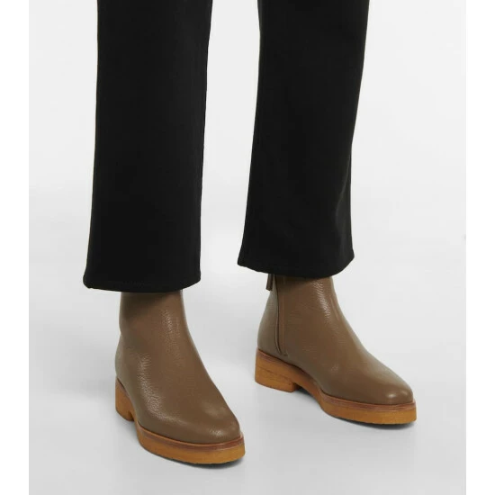 The Row accents your footwear with the traditional Boris ankle boots. They’re made from smooth beige leather and cork-effect rubber soles, while zipped sides make for practical ease-of-wear.