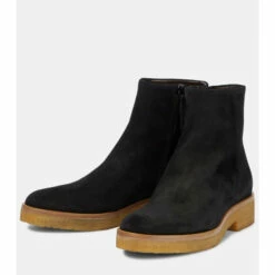 The Row accents your footwear with the traditional Boris ankle boots. They’re made from smooth black calfskin suede and cork-effect rubber soles, while zipped sides make for practical ease-of-wear.