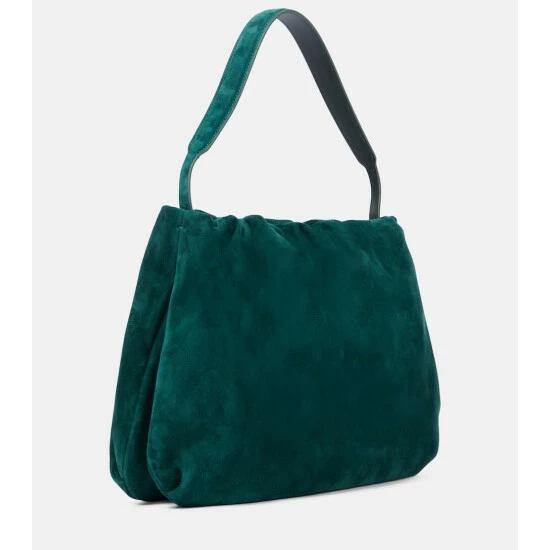 The Bourse Small shoulder bag from The Row is the epitome of contemporary design. It’s made in Italy from teal-green suede with a ruched topline, a detachable shoulder strap, and an interior zipped pocket.