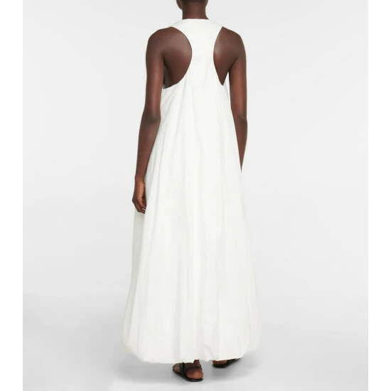 The Capi maxi dress from The Row is designed with the modern woman in mind. It features a scoop neckline with a racer-back and a high-low bubble hem.