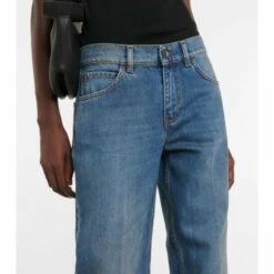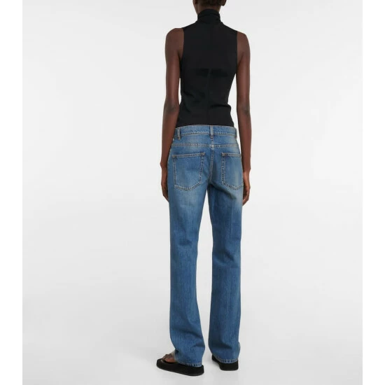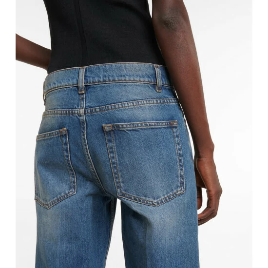 The Carlyl jeans from The Row are distinguished by their extra-long, straight legs -creating unique bunching at the foot. In a slightly faded finish, they have a low-rise and single crease down the front and rear.