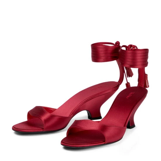 The Row’s Charlotte sandals are made from lustrous satin. Set atop low, flared heels, they have tassel-trimmed ties that wrap around the ankles.