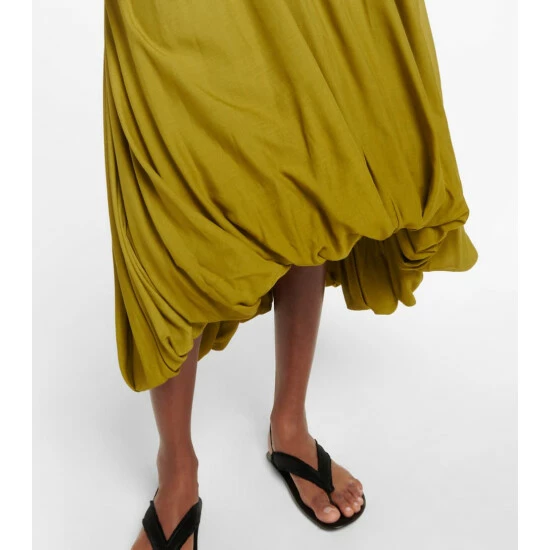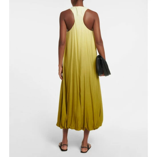 The Copo dress from The Row is made from airy voile with a billowing balloon hem that’s artfully gathered and will move along with every step. It’s dyed in a striking ombré colorway.