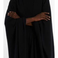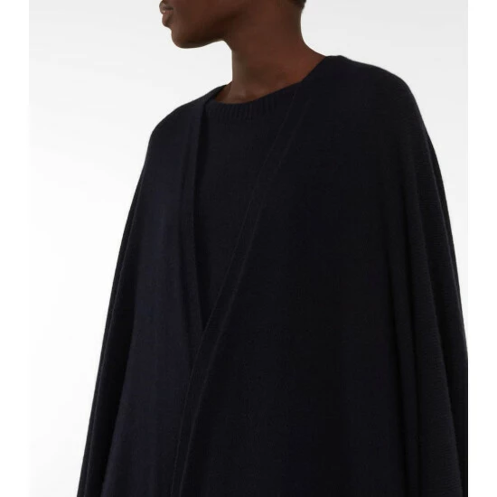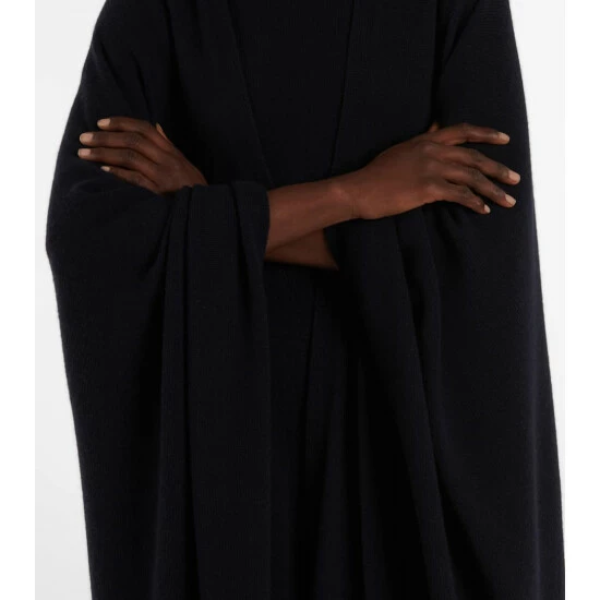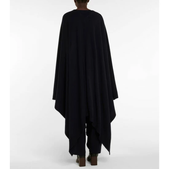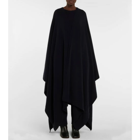 The Row’s Denice cape is the perfect balance of laid-back and luxurious. It’s made in Italy from navy blue cashmere with a long, loose silhouette, and layered handkerchief hemline.