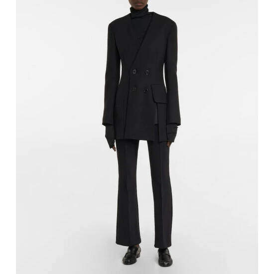 Refined tailoring is at the heart of The Row’s identity – the brand was named after Savile Row, London’s bespoke tailoring district. This double-breasted wool-blend blazer features a slim-fitting silhouette with flap and side-split detailing.