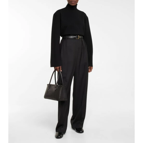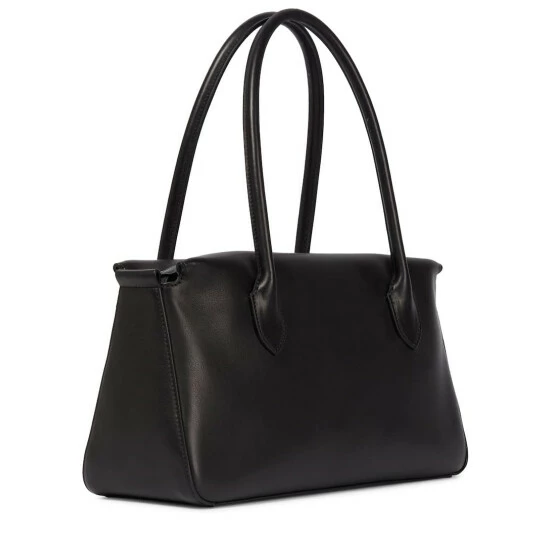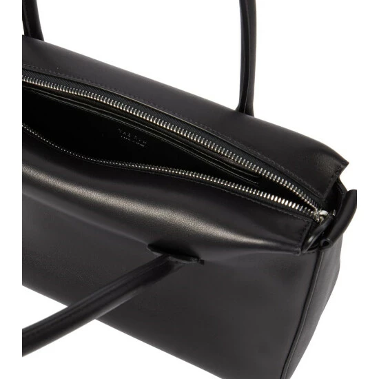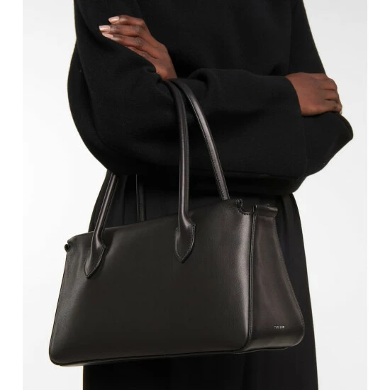 Consider The Row’s E/W shoulder bag for vintage-inspired accessorizing. Made in Italy from grained calfskin leather in black, it has a baguette-style shape featuring a subtle hot-stamped logo at one side.