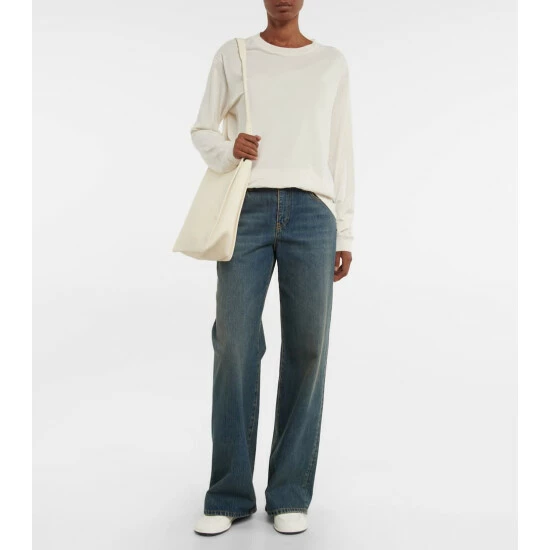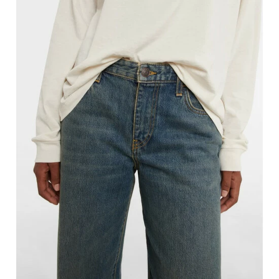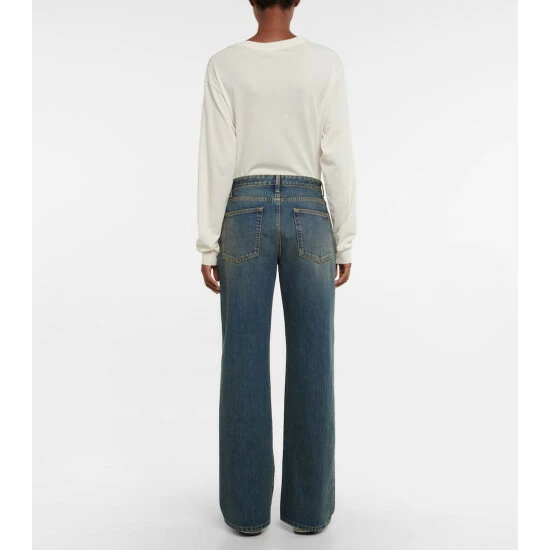 Elevating a throwback denim style, the Eglitta jeans from The Row are cut with a high rise. In a five-pocket design, the indigo-wash jeans have a slightly faded finish and wide legs.