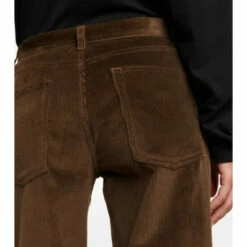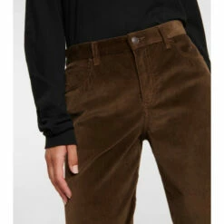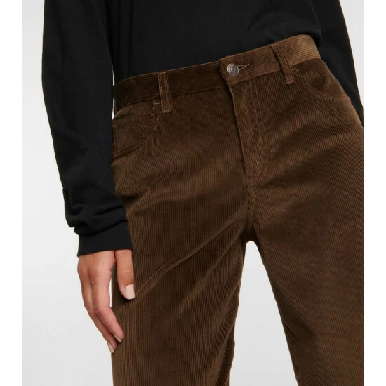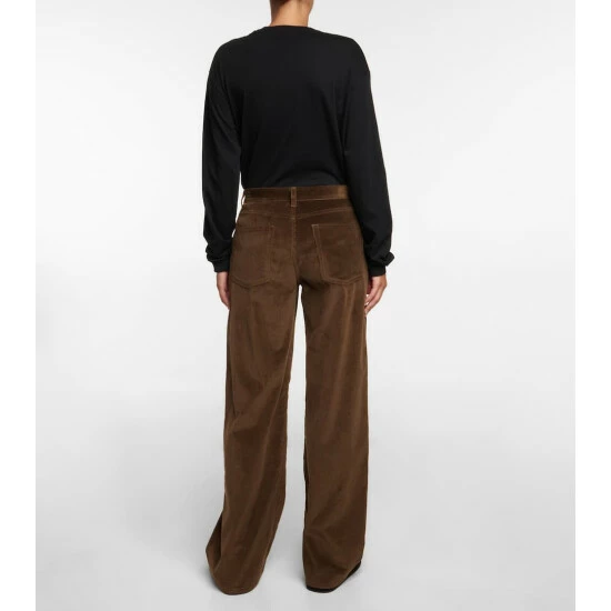 The Eglitta pants from The Row are made from a deluxe blend of cotton and cashmere in fine-wale corduroy. In a dark olive hue, the low-rise design has a wide-leg finish.