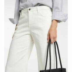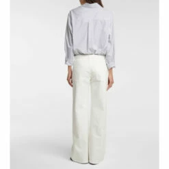 Elevating a throwback denim style, the Eglitta jeans from The Row are designed with a mid rise. In a five-pocket design, the white jeans have a slightly faded finish and wide legs.