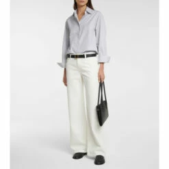 Elevating a throwback denim style, the Eglitta jeans from The Row are designed with a mid rise. In a five-pocket design, the white jeans have a slightly faded finish and wide legs.
