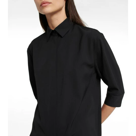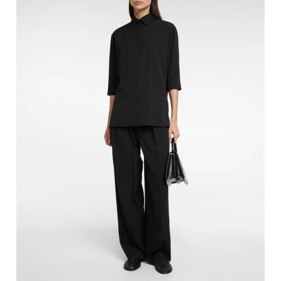 The Row masters the art of elegant simplicity with the Elada shirt. Shaped for a relaxed fit, it’s made from a wool-blend with a concealed button placket, cropped sleeves, and side-slits at the hem.