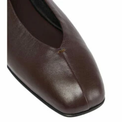 The Eva ballet flats from The Row are made in Italy from smooth leather. They have a contemporary V-shaped silhouette and feature a discreet metal stitch detail in the front