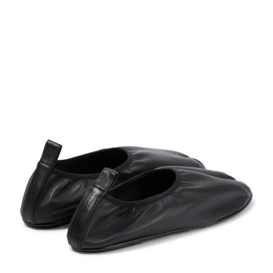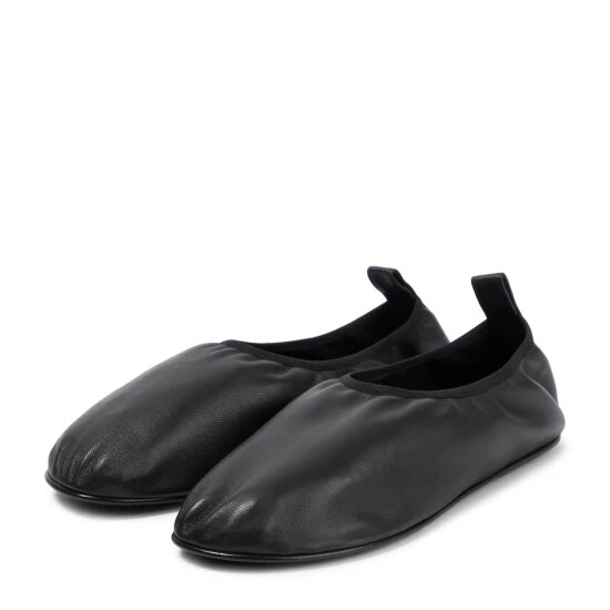The Eva ballet flats showcase the timeless vision of The Row. Made from polished leather, this slip-on style has V-shaped vamps that are detailed with metal “stitch” hardware.