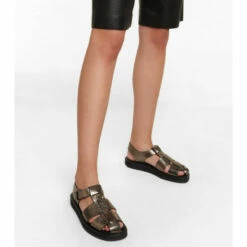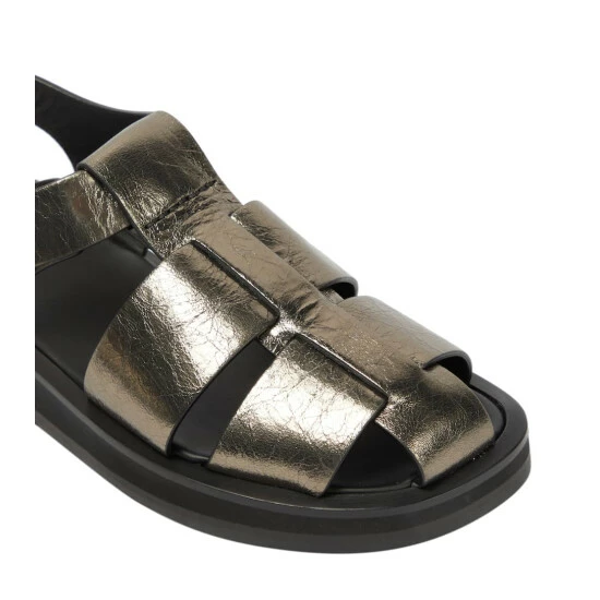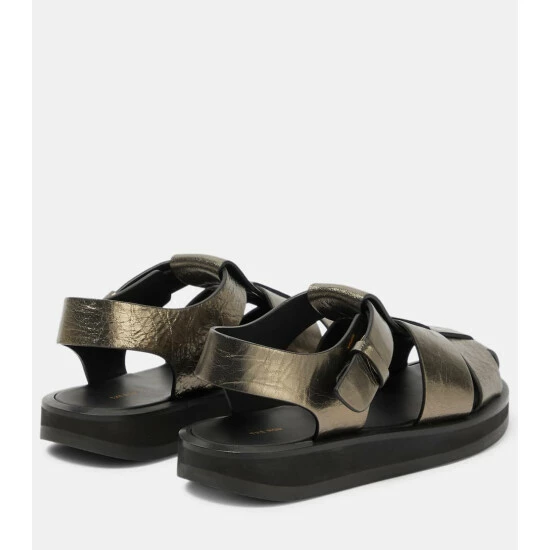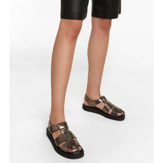 The Row’s Fisherman sandals are aptly named – their woven cage straps are a subtle reference to maritime netting. They’re made from metallic leather with buckled straps and raised rubber soles for everyday comfort.