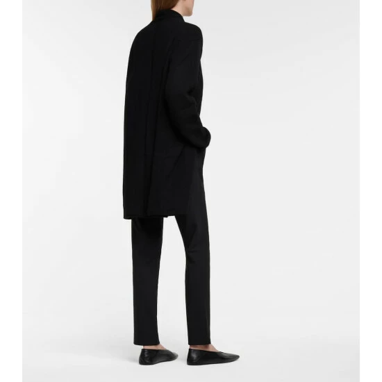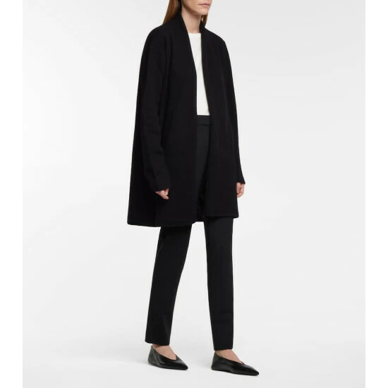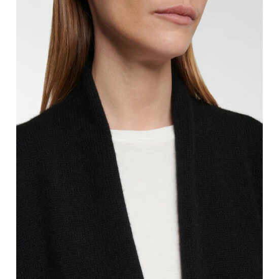 The Row’s latest collection, which includes the Fulham cardigan in black, is full of long lines and tone-on-tone layering. Made from mid-weight cashmere, this style has a relaxed fit with a shawl collar, open front, and dropped shoulder seams. Complete the look by wearing yours over a turtleneck sweater.