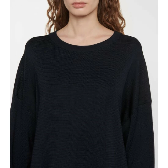 The Gabby rib-knit top is endlessly versatile. It’s made from lustrous, heavy knitted fabric and is cut to a relaxed fit with a flattering wide neckline.