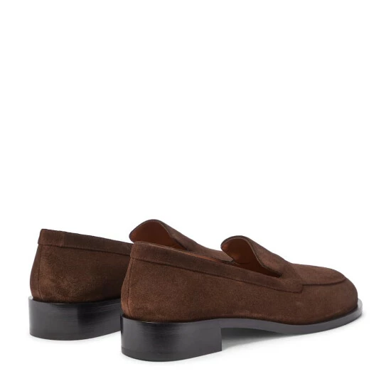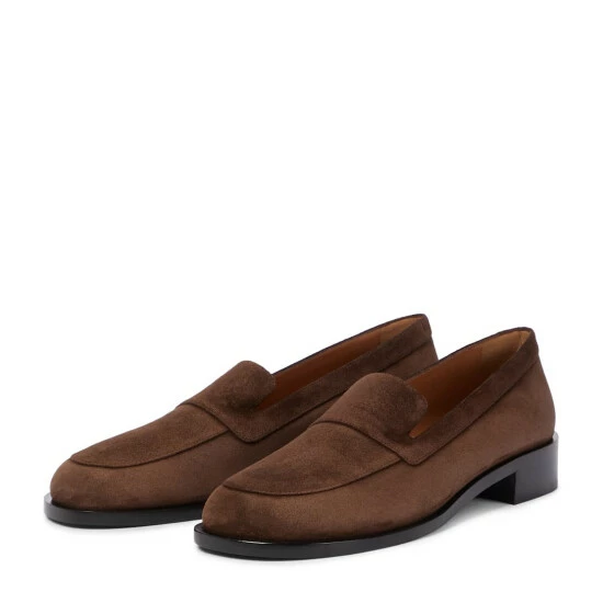 The Garcon loafers from The Row are named after the label’s affinity with menswear design. Made from smooth calfskin suede in dark ”Mocha” brown, they’re set atop blocked heels for a touch of elevation. Let yours complete the label’s oversized suiting.