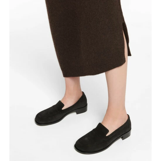The Garcon loafers from The Row are aptly named and demonstrate the label’s affinity for menswear design. Made from smooth calfskin suede in classic black, they’re set atop stacked block heels for a touch of elevation. Let yours complete the label’s oversized suiting.