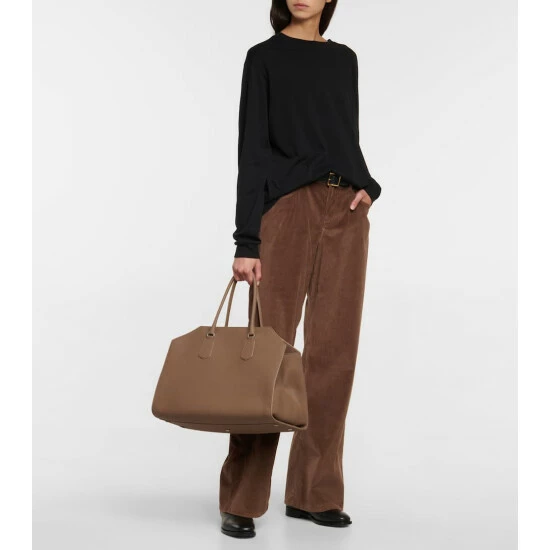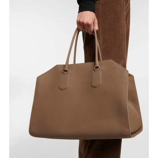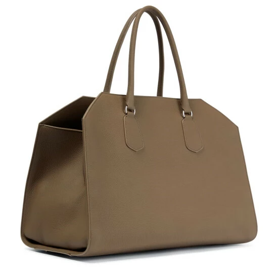 Carry all your essentials in the Geo Margeaux weekend tote bag from The Row. The design is made from matte grey calfskin leather and features slanted corners with two top handles.