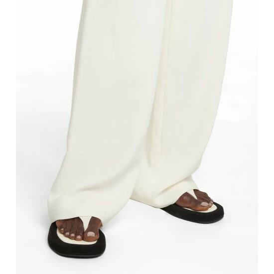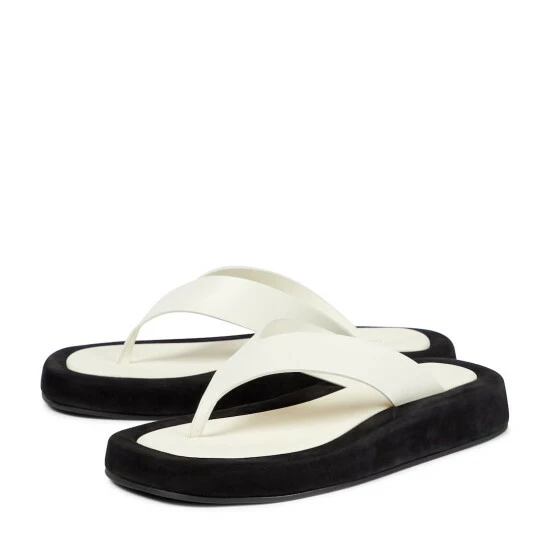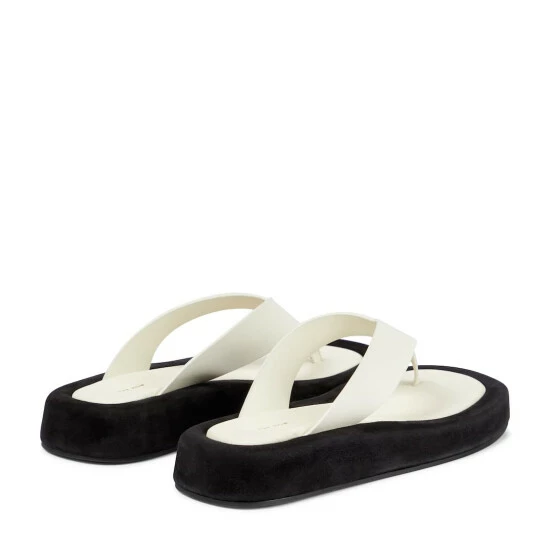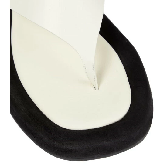 The Row’s Ginza slides are inspired by traditional Japanese sandals. They’re made in Italy from a combination of white leather and black suede, which covers the cushioning rubber outsoles.