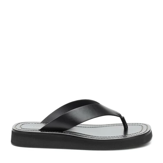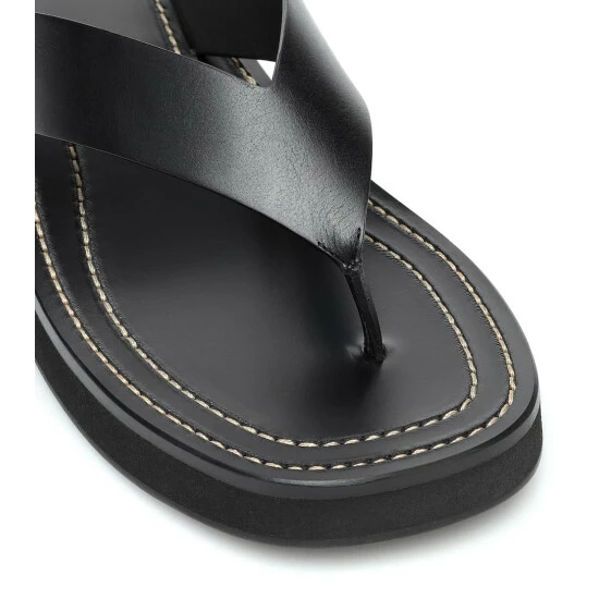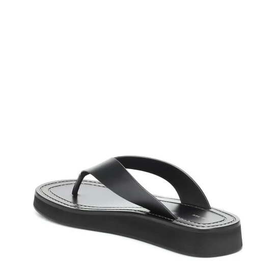 The Row returns to the early aughties as its source of inspiration for the Ginza platform sandal, a minimalist thong silhouette. Made in Italy from black calf leather with contrast top-stitching around the sole, it’s a retro-meets-modern design that belongs in every well-curated wardrobe.