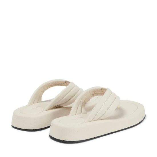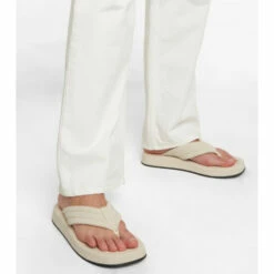 The Row’s Ginza sandals are inspired by traditional Japanese footwear, and feature a flatform sole and toe-separating strap. Crafted in Italy, this pair has white canvas uppers and hand-wrapped bases.