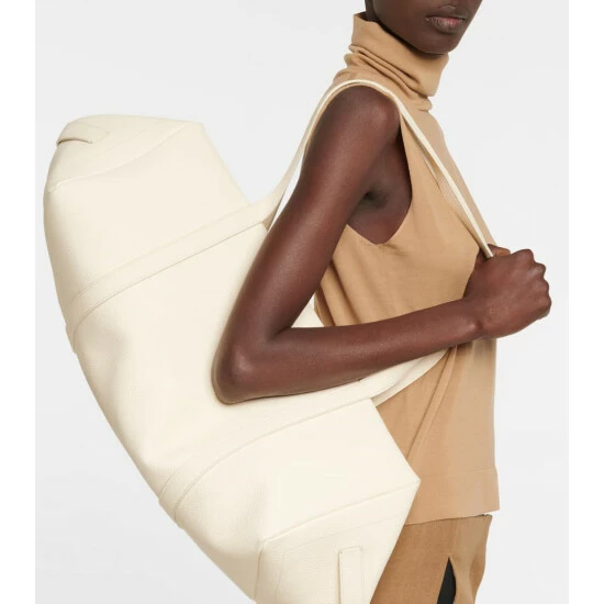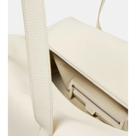 The Gio style is testimony to The Row’s timeless vision for leather design. This streamlined design has an elongated profile with foiled lettering to the front, a zip-top closure, one main compartment, and slip pockets.