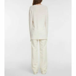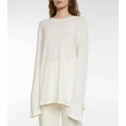 The Row’s Giusti top is the type of summer sweater you’ll want to have on hand when the night cools down. It’s made from a supremely fine blend of cashmere, cotton and silk, with alternating textured stripes in ivory and white.
