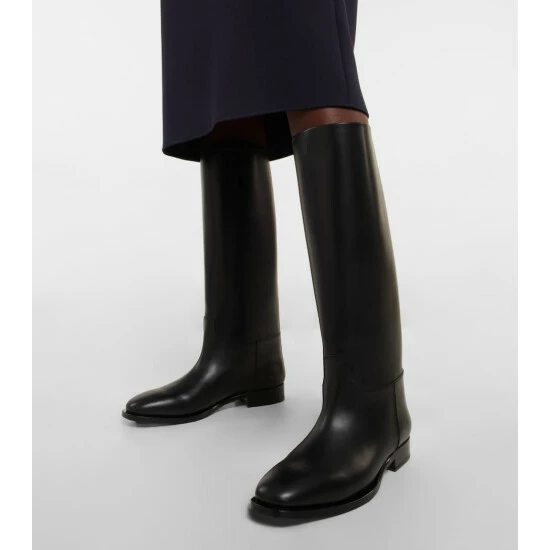 The Row’s Grunge knee-high boots are inspired by equestrian riding styles. They’re made from polished leather with low-stacked block heels.