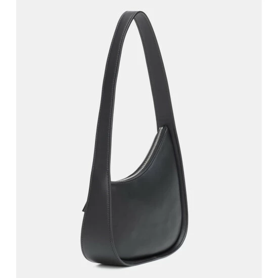 Tap The Row’s modern minimalism with the Half Moon shoulder bag. Made in Italy from smooth black calfskin, it has a streamlined silhouette with a flat shoulder strap that encompasses its curved shape. Wear yours with one of the label’s slinky slip dresses to channel understated elegance.