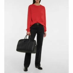 For luxurious travelling, look to the Iowa duffel bag from The Row. It is made from leather with luggage-specific details and an adjustable shoulder strap.