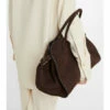 The Iris bag from The Row is the definition of understated luxury: it features a casual 90’s silhouette and is made from soft black nubuck leather.