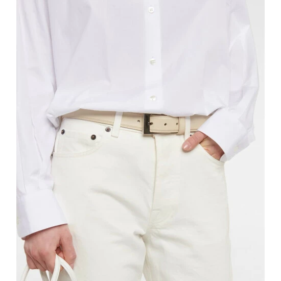 Tie your looks together with the Jewel leather belt from The Row. It’s made in Italy from grained cream leather and fastens via a glistening silver-tone buckle.