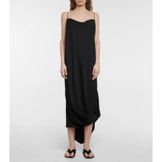 The Row updates your LBD collection with the Kapalua slip dress. It’s made from a wool-blend with a cowl-neck and twisted hemline for an asymmetric drape.