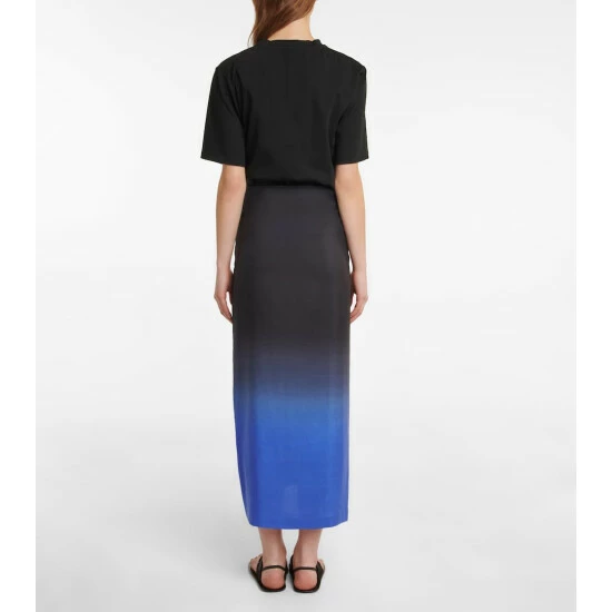 Though simple in silhouette, the Kawa maxi skirt from The Row is defined by a standout black-to-blue ombré effect. It’s cut from pure silk to a flattering high-rise with a self-tie wrap front.