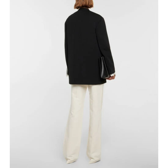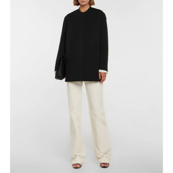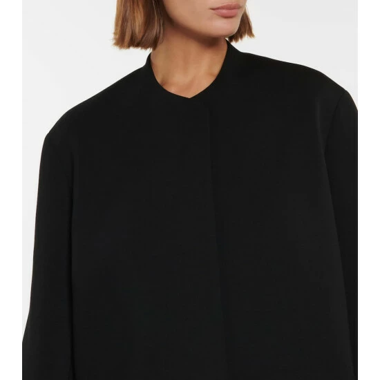The Row’s Laradi jacket is made from scuba. Both contemporary and minimalist, it has a collarless construction, layered cuffs, and concealed fastenings. Note the smooth silk lining for layering with ease.