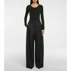 The Row’s Lazco pants are made from scuba to structure their supremely wide-leg silhouette. They’re tailored with pressed pleats at sit high on the waist for elongating effect.