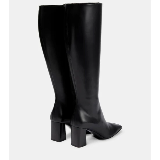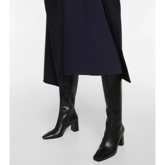 Structure everyday looks around the easy elegance of these The Row knee-high boots. Made from smooth black leather, they have squared toes, side zippers, and angular block heels.