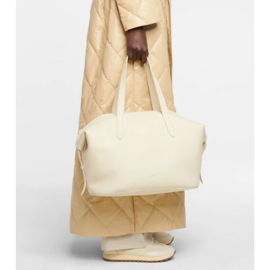 The Row makes an example of everlasting elegance with this leather tote bag. Made from tactile calfskin, the elongated profile of this seamless style is suspended from fixed top handles and features knotted sides.