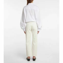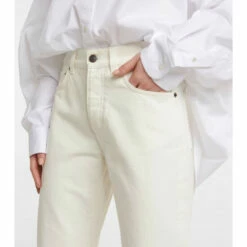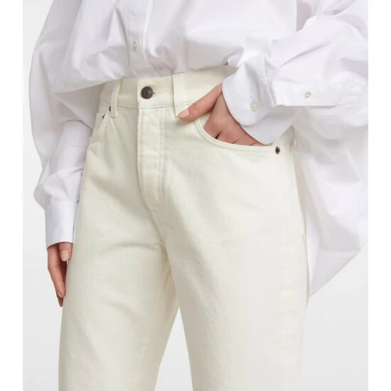 The Lesley jeans from The Row are a versatile wardrobe workhorse. Made in Italy from mid-weight, white denim, they have a mid-rise silhouette with slightly cropped straight legs that flare lightly towards the hems.