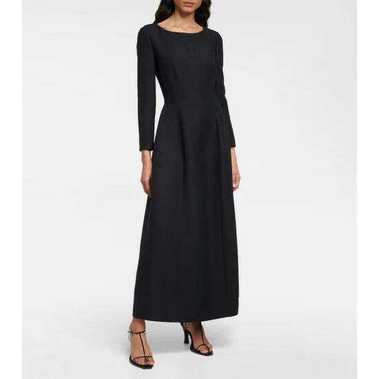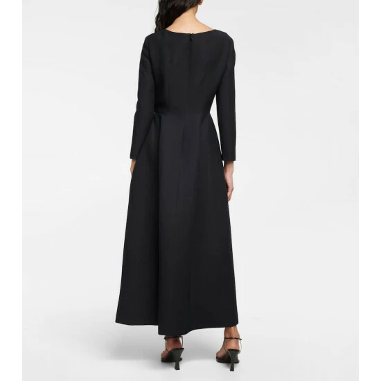 The Lilibet midi dress from The Row is made from wool and silk in a long-sleeved A-line silhouette that flares out at the waist. This style brings functionality to elegance, with princess dart detailing and inseam pockets.